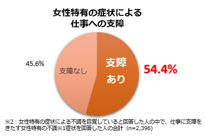 ◆女性特有の症状を自覚している人のうち、54.4%が「仕事に支障がある」と回答