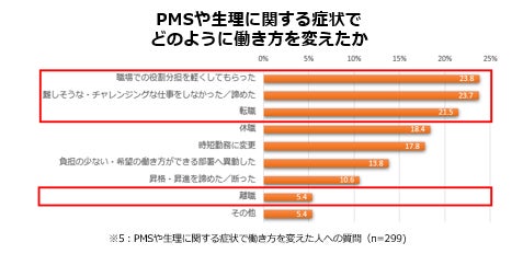 【グラフ⑤※5】PMSや生理に関する症状でどのように働き方を変えたか