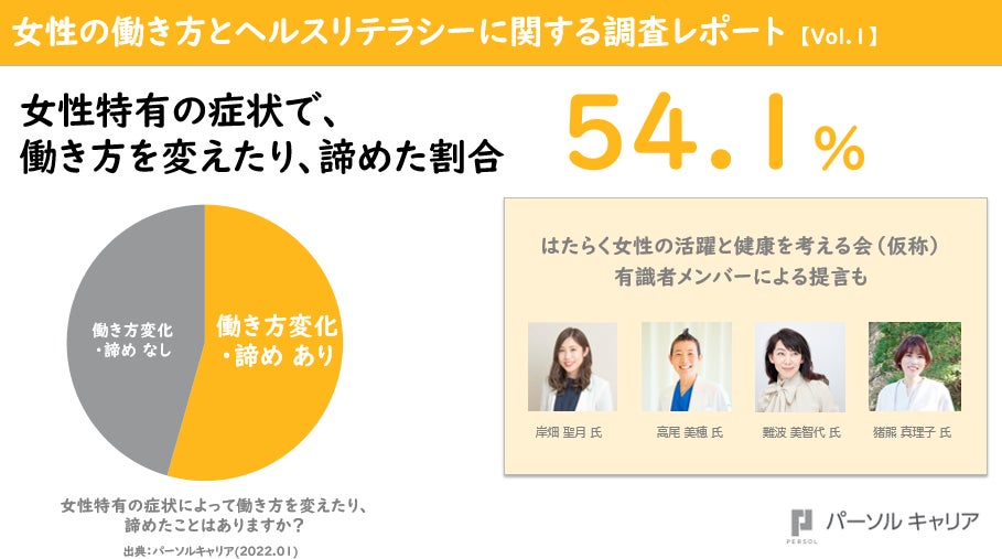 パーソルキャリア株式会社が主催するコミュニティ「はたらく女性の活躍と健康を考える会(仮称)」では女性の働き方とヘルスリテラシーに関する調査データをはじめ、さまざまな情報を今後も継続して配信してまいります。