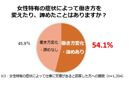 3.女性特有の症状を理由に働き方を変えた・諦めたことがある女性は54.1%