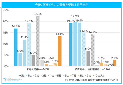 そのうち今後の選考受験予定は1社が最多(19.7%) 内定式後も受験する可能性も