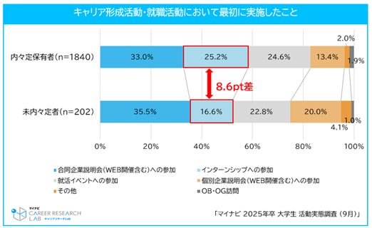 ◆内々定保有者の4人に1人がキャリア形成活動や就職活動の中で最初に実施したことは「インターンシップへの参加」