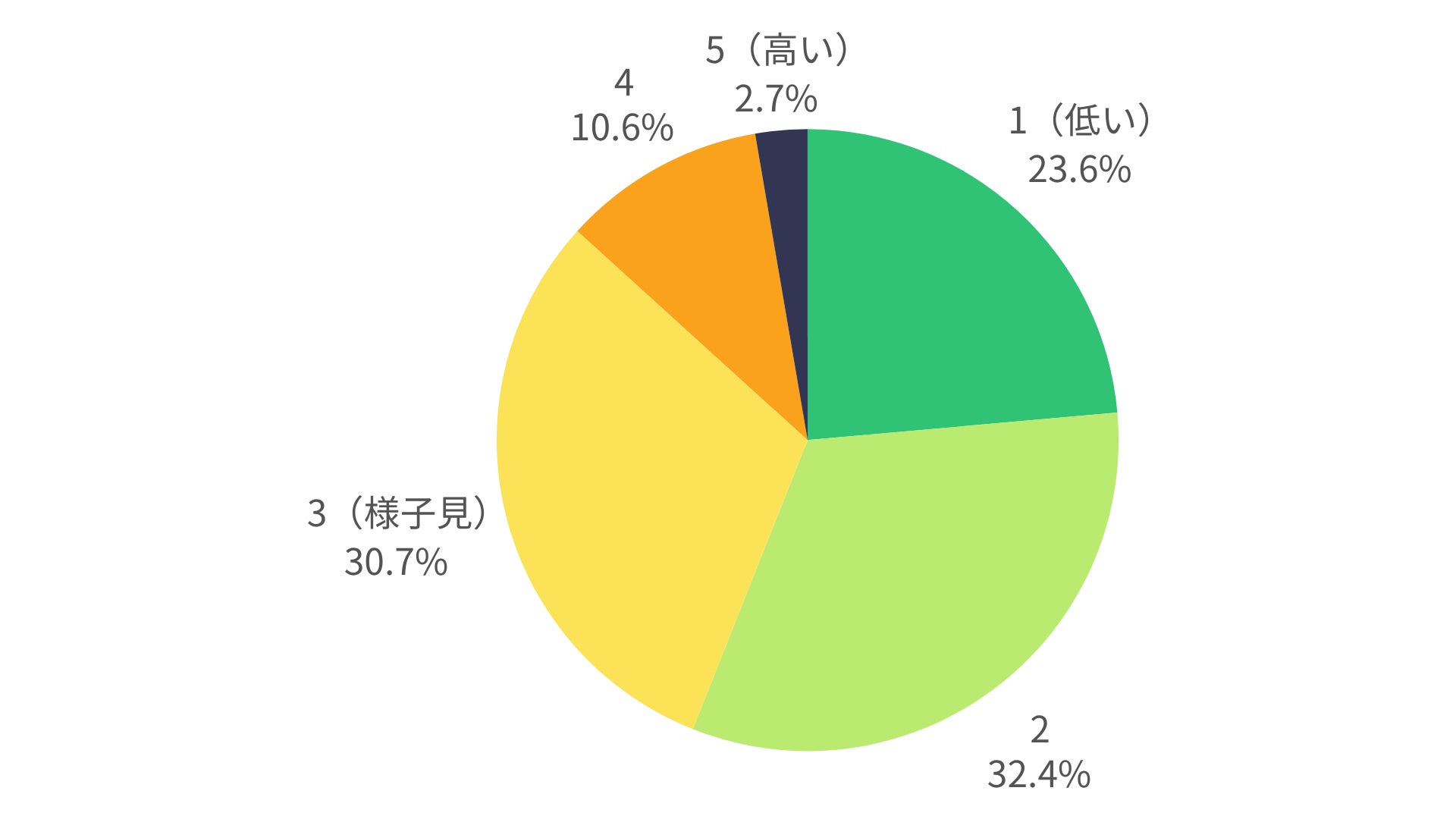 転職可能性が低い「評価1・2」の合計は56.0%と過半数を占めるものの、残りの44.0%(評価3〜5)は3年後のキャリアを決めかねている、あるいは転職に前向きな姿勢であることがわかります。