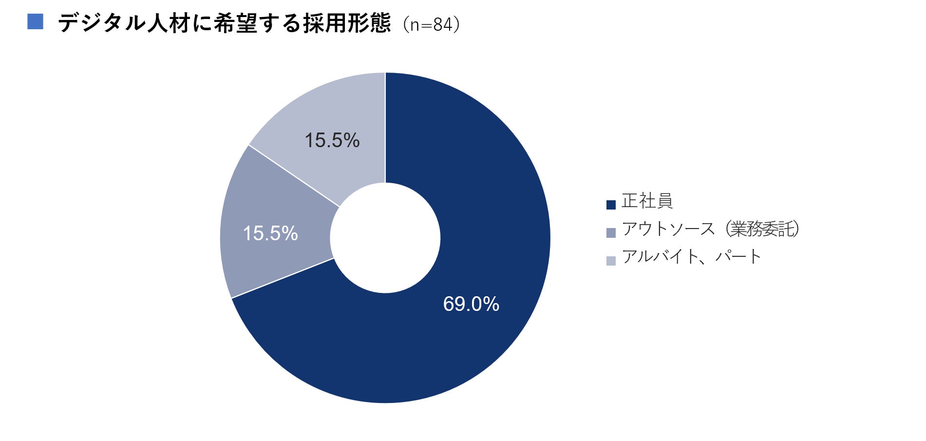 企業が希望するデジタル人材の採用形態は「正社員」が69.0%で最多