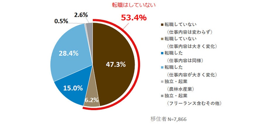 記事引用:PR TIMES「パーソル総合研究所、地方移住に関する調査結果を発表 移住者の53.4%が移住時に転職せず、58.6%が収入に変化なし」
