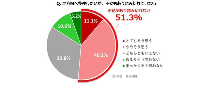 移住意向者のうち51.3%は、何らかの不安があり移住に踏み切れないでいる。