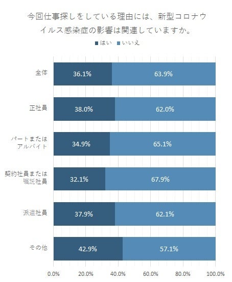 求人に応募した人に、今回仕事探しをしている理由に「新型コロナウイルス感染症の影響」は関連しているかきいた。