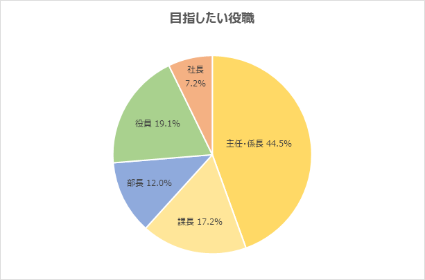 目指したい役職は「主任・係長」が44.5%で最多。次いで、「役員」19.1%、「課長」17.2%と続きます。「主任・係長」と回答した20代からは、「マネジメントよりも、現場の仕事が向いていると思う」「管理職よりも専門職を目指したい」「スキルを磨き、専門職としてキャリアを形成していきたい」といった声が寄せられました。専門性を持つ人材にとって魅力的な職場になるためには、マネジメント以外のキャリアパスも用意することが求められていると言えます。