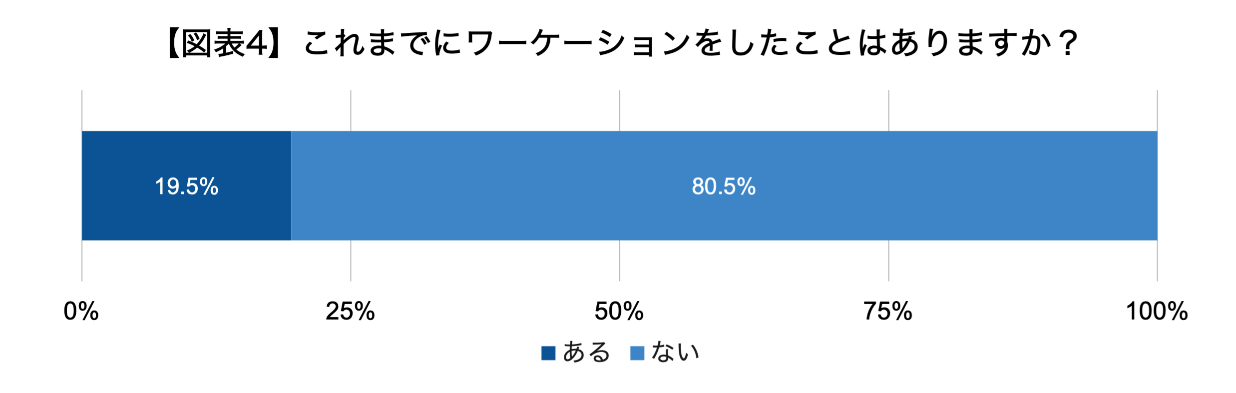 3. フルリモートワーク歴8年の当社でも、ワーケーション経験者は2割未満。