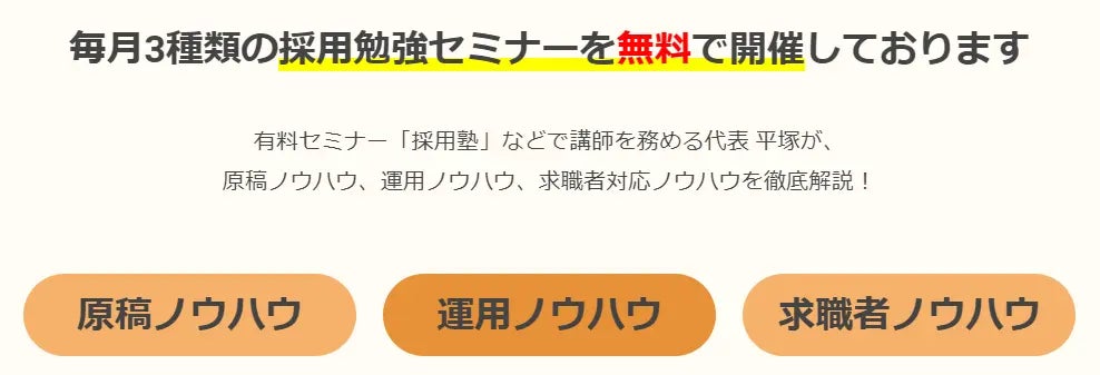 CheerCareerでは毎月、「採用成功の秘訣」を解説する採用勉強セミナーを開催しており、スカウトの効果的な打ち出し方や求人原稿作成のポイントなどをお伝えしています。