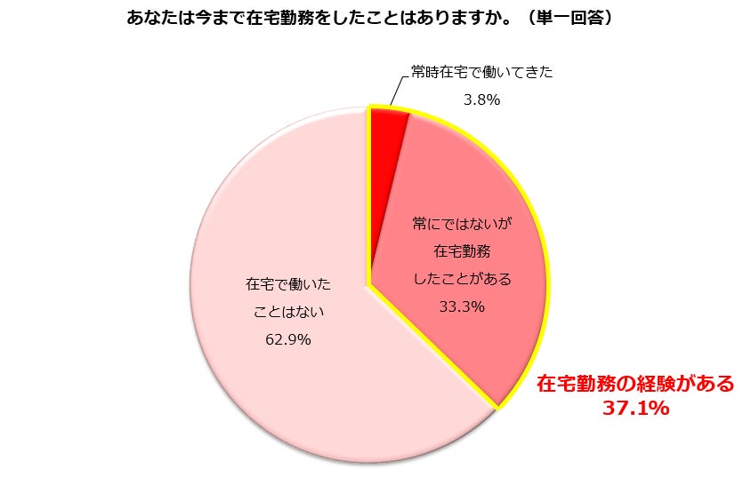 コロナ禍発生によって出された緊急事態宣言がきっかけとなり、在宅勤務などのテレワークは一気に広がりました。仕事と家庭の両立を希望する主婦・主夫層に「あなたは今まで在宅勤務をしたことはありますか」と尋ねたところ、在宅勤務したことがあると回答した人は37.1%。それに対し、「同僚や家族、友人など、あなたの周りで今まで在宅勤務したことがある人を知っていますか」との質問には8割を超える人が「知っている」と回答しました。在宅勤務がそれだけ身近な働き方になっていることが伺えます。