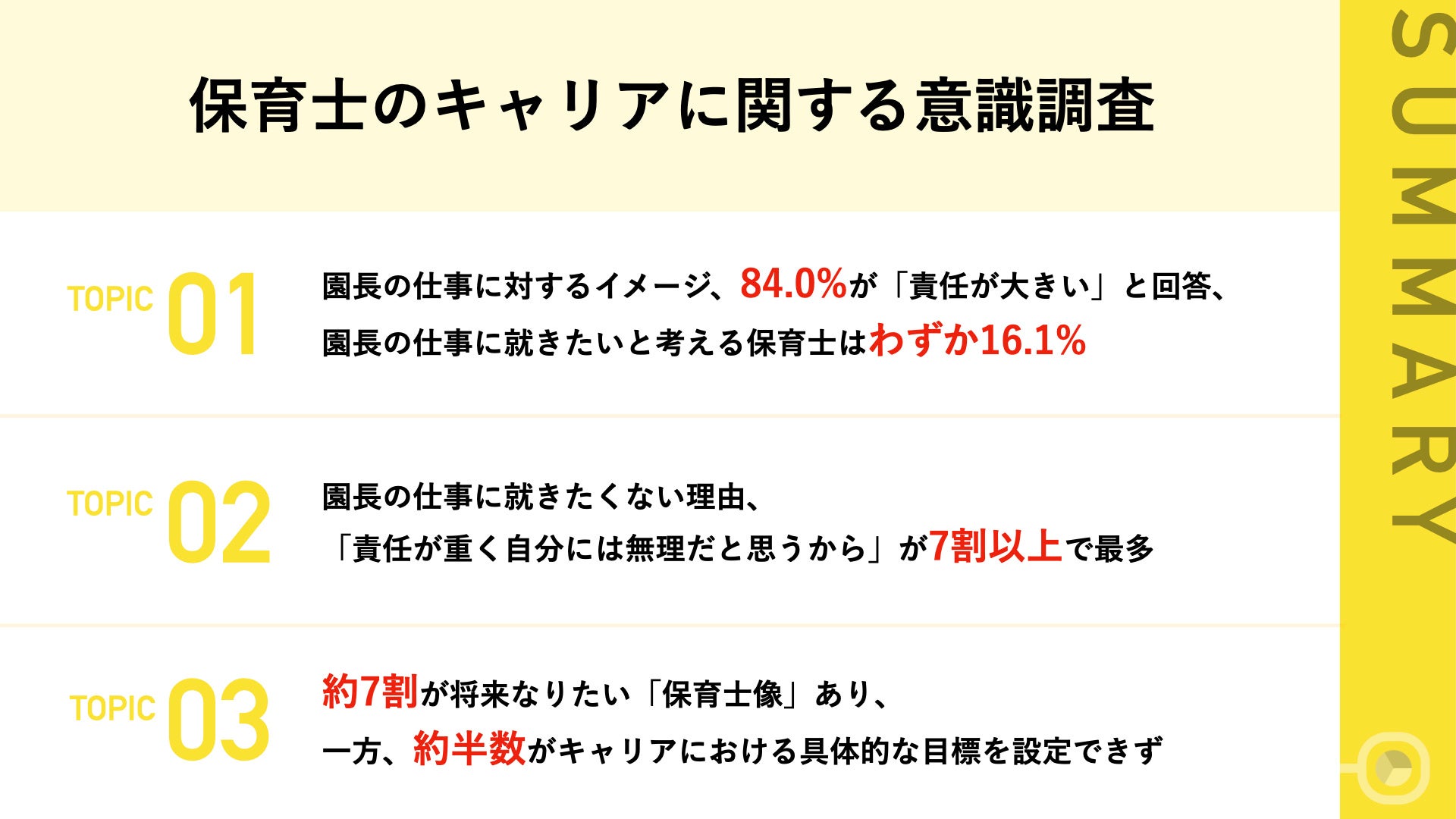 記事引用:PR TIMES「【保育士のキャリアに関する実態調査】園長の仕事に就きたいと考えている保育士は、わずか16.1% 「責任が重く自分には無理だと思う…」