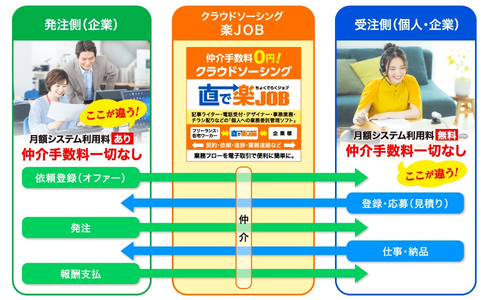 • 仲介手数料無料の新しいクラウドソーシングソフト『楽JOB』