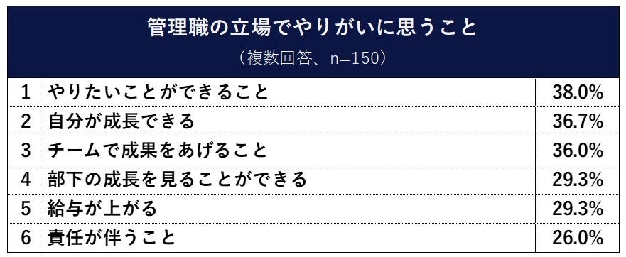 Q5. 【管理職の方】あなたが管理職の立場でやりがいに思うことは何ですか。(複数回答、n=150)