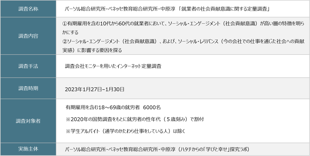 記事引用:PR TIMES「パーソル総合研究所×ベネッセ教育総合研究所×立教大学中原淳教授による産学連携研究プロジェクト 就業者の社会貢献意識に関する調査結果を発表」