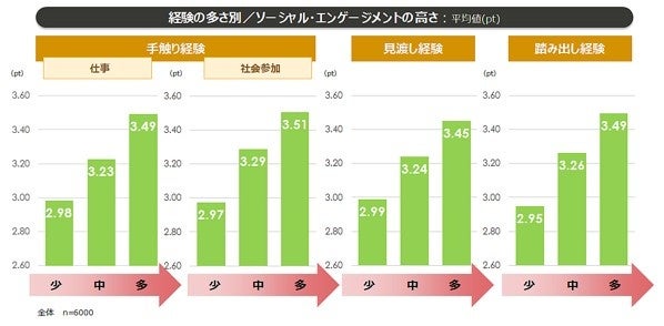 【4】 「手触り経験」「見渡し経験」「踏み出し経験」が多いほど、ソーシャル・エンゲージメントが高い。