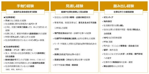 ソーシャル・エンゲージメントの高さには、学生時代・社会人の経験との関連が見られ、社会人領域では直接的体感を伴う「手触り経験」、仕事以外の越境経験である「踏み出し経験」、組織や仕事を俯瞰して見る「見渡し経験」といった経験が、ソーシャル・エンゲージメントを育てていることが示唆された。