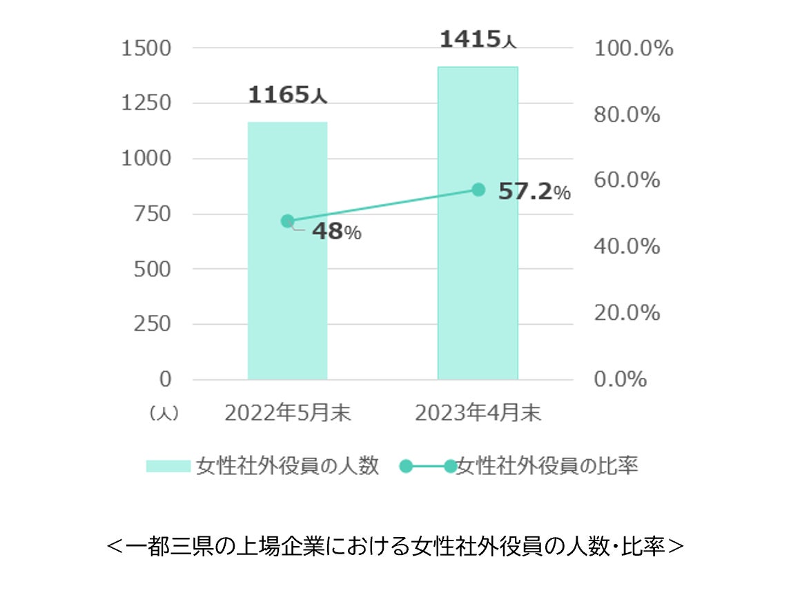 記事引用:PR TIMES「一都三県の上場企業、女性社外役員が約1年で約1.3倍増加。約6割の企業が女性社外役員を採用」