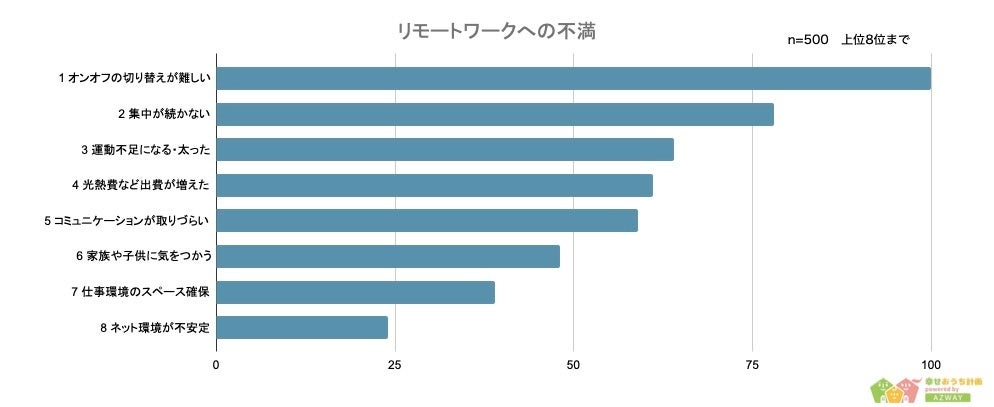 リモートワークに対する不満は「オンオフの切り替えが難しい」が1位