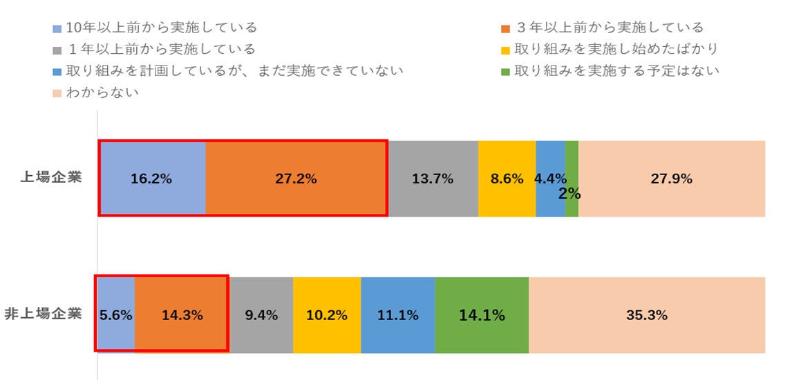 ■「人的資本経営」という言葉が出てくる以前から、4割強もの上場企業が取り組みを実施