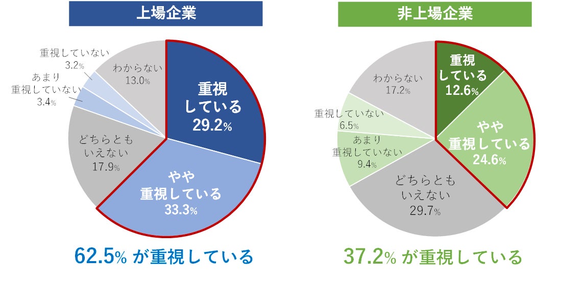 ■上場企業の62.5%、非上場企業の37.2%が人的資本経営を「重視」