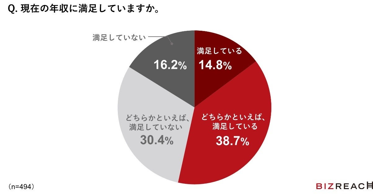 記事引用:PR TIMES「<年収750万円以上の即戦力人材に「年収」に関する調査を実施>46.6%が、現年収に満足していないと回答」