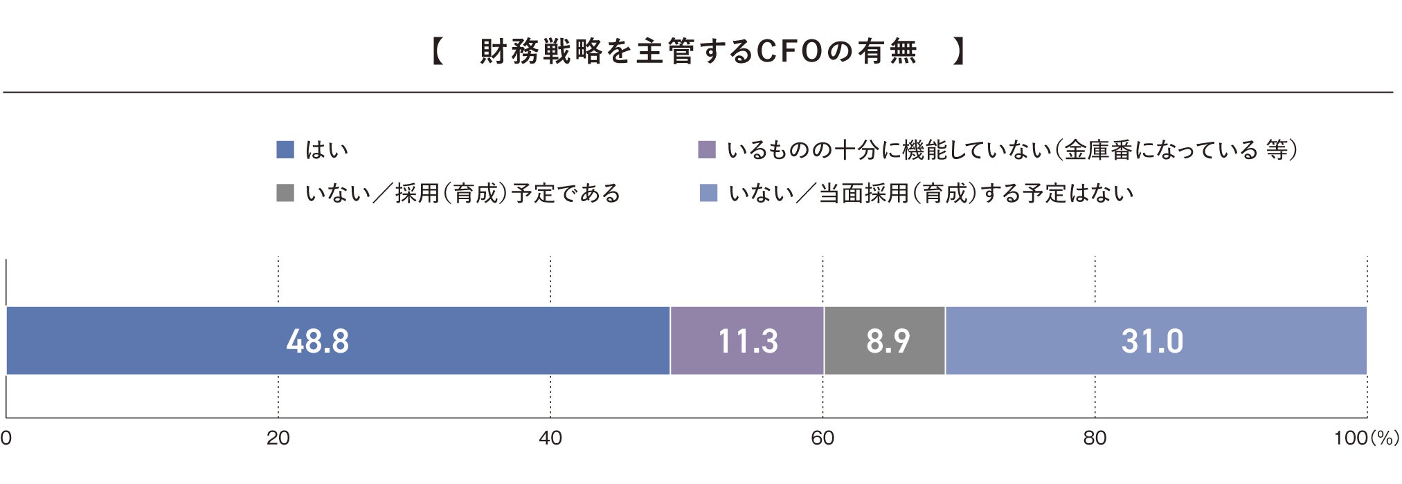 ■約6割が「財務戦略を主管するCFOがいる」と回答するも、一部「十分に機能していない」企業も。