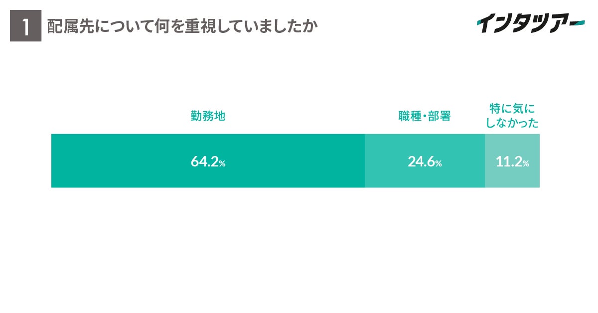 ●配属先で重視するポイントは「勤務地」64.2% 「馴染みの土地から離れたくない」傾向