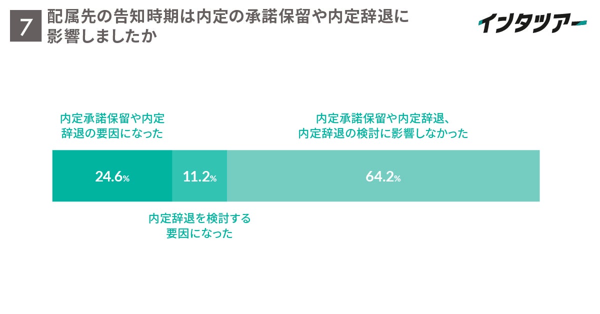 設問7では、配属先の告知時期が内定の承諾保留や内定辞退に影響したかどうか聞きました。