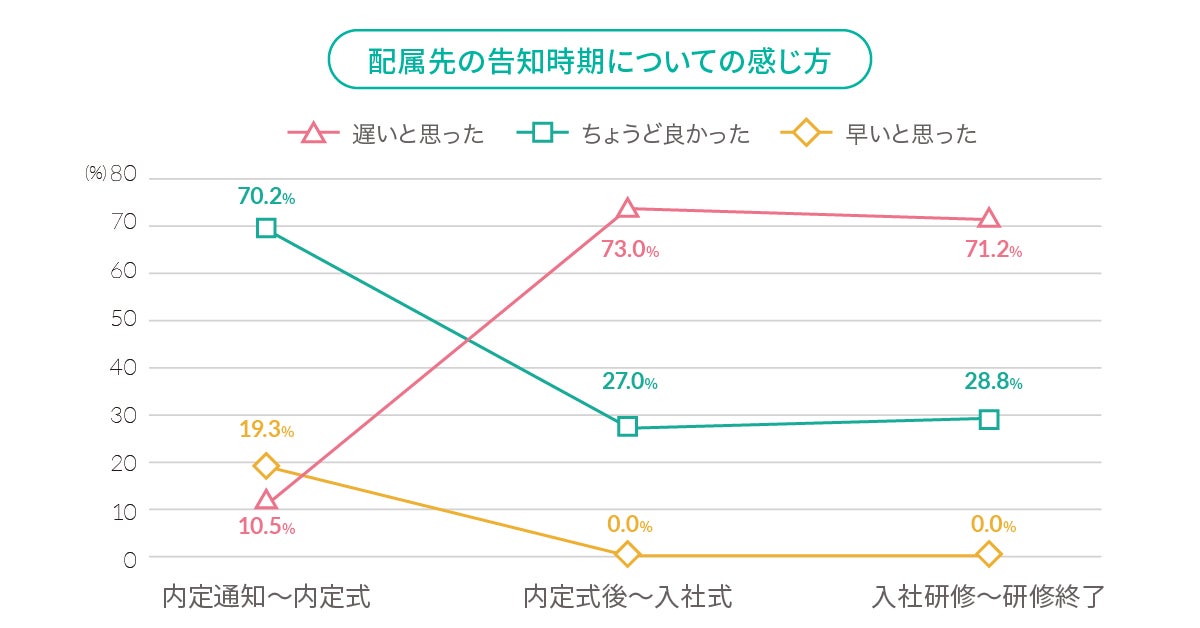 学生が配属先を知りたい時期としては、内定式までが一つの目安となっています。