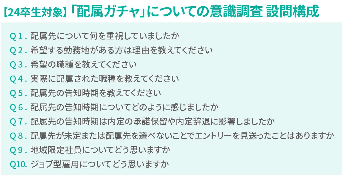 • 24卒生対象 「配属ガチャ」についての意識調査 設問構成