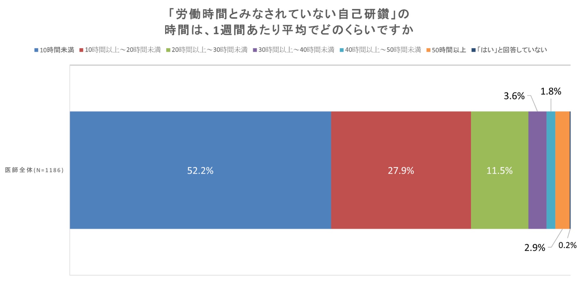 今回のアンケート調査結果では、「労働とみなされていない自己研鑽」の時間がある、と回答した医師が半数近くいました。