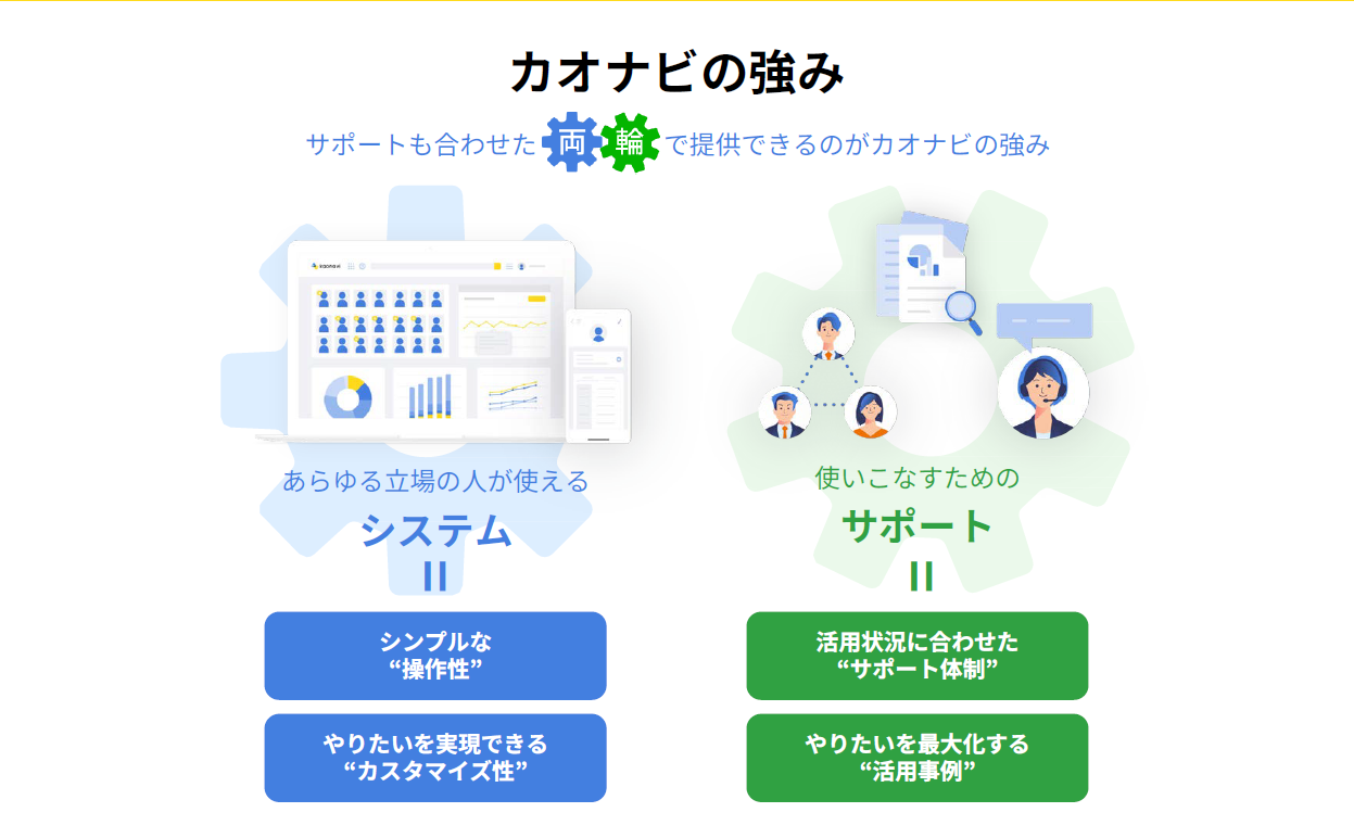 カオナビは、システムを導入して終わりではなく、活用して成果につなげるまでを徹底サポートします。